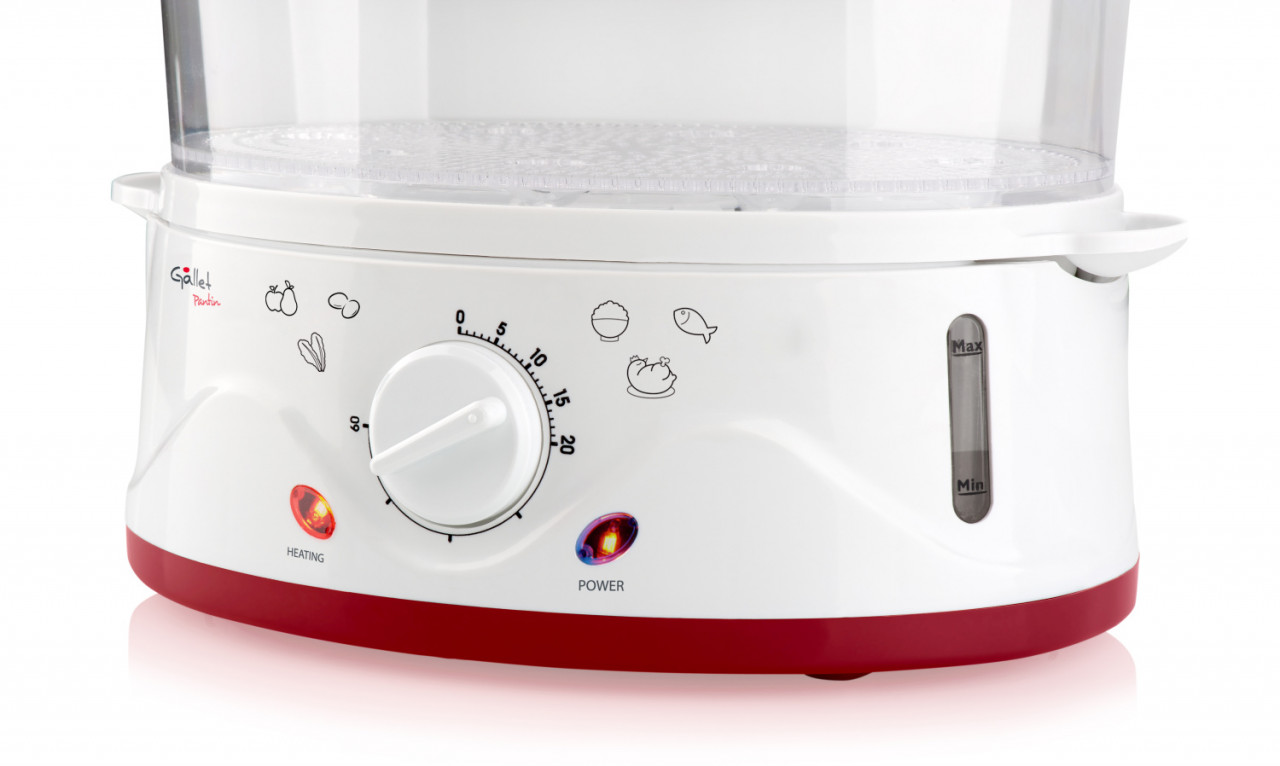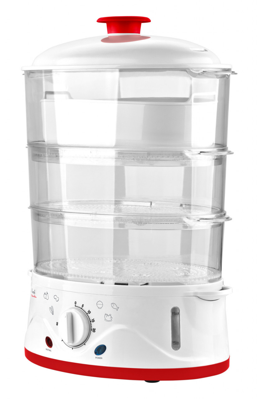 Gatirea cu aburi retine substantele nutritive si vitaminele din alimente Aparatul GALLET PANTIN CUV962 ofera un mod foarte sanatos de preparare a alimentelor. Este ideal pentru prepararea sanatoasa de legume congelate sau proaspete, carne, peste si fructe de mare. Un mare avantaj este generarea foarte rapida de abur, in doar 30 de secunde . Aparatul este format dintr-o baza principala si trei recipiente transparente cu un volum total de 8,5 litri . In pachet sunt incluse un castron, un bol pentru orez si un suport special pentru oua. La gatirea cu abur, alimentele isi pastreaza vitaminele, mineralele, culoarea si gustul, care sunt eliberate in apa in timpul gatitului conventional. La abur, mancarea nu se arde, nu trebuie amestecata, iar forma si consistenta sa se pastreaza. Un cronometru de 60 de minute este un ajutor foarte util. Doua indicatoare luminoase semnalizeaza procesul de incalzire si functionare. Veti sti intotdeauna cand trebuie sa completati cu apa – din exterior, fara sa demontati vreun ansamblu – deoarece o fanta transparenta arata permanent nivelul apei. Recipientul de scurgere ce sta sub cosurile de gatit, colecteaza aburul condensat din timpul gatirii Avantaje: Indicator al nivelului apei Orificiu pentru completare cu apa: permite completarea cu apa in timpul gatitului fara a intrerupe procesul. Suport de gatit oua. Acesta permite fierberea oualelor intr-un mod confortabil Componente usor si rapid de ansamblat Tava de picurare voluminoasa pentru a capta in siguranta aburul condensat Dimensiuni aparat Dimensiuni cutie ambalare Inaltime 42 cm Inaltime 26 cm Latime 31 cm Latime 26,5 cm Adancime 20 cm Adancime 26,5 cm Greutate 2 kg Greutate 2,44 kg