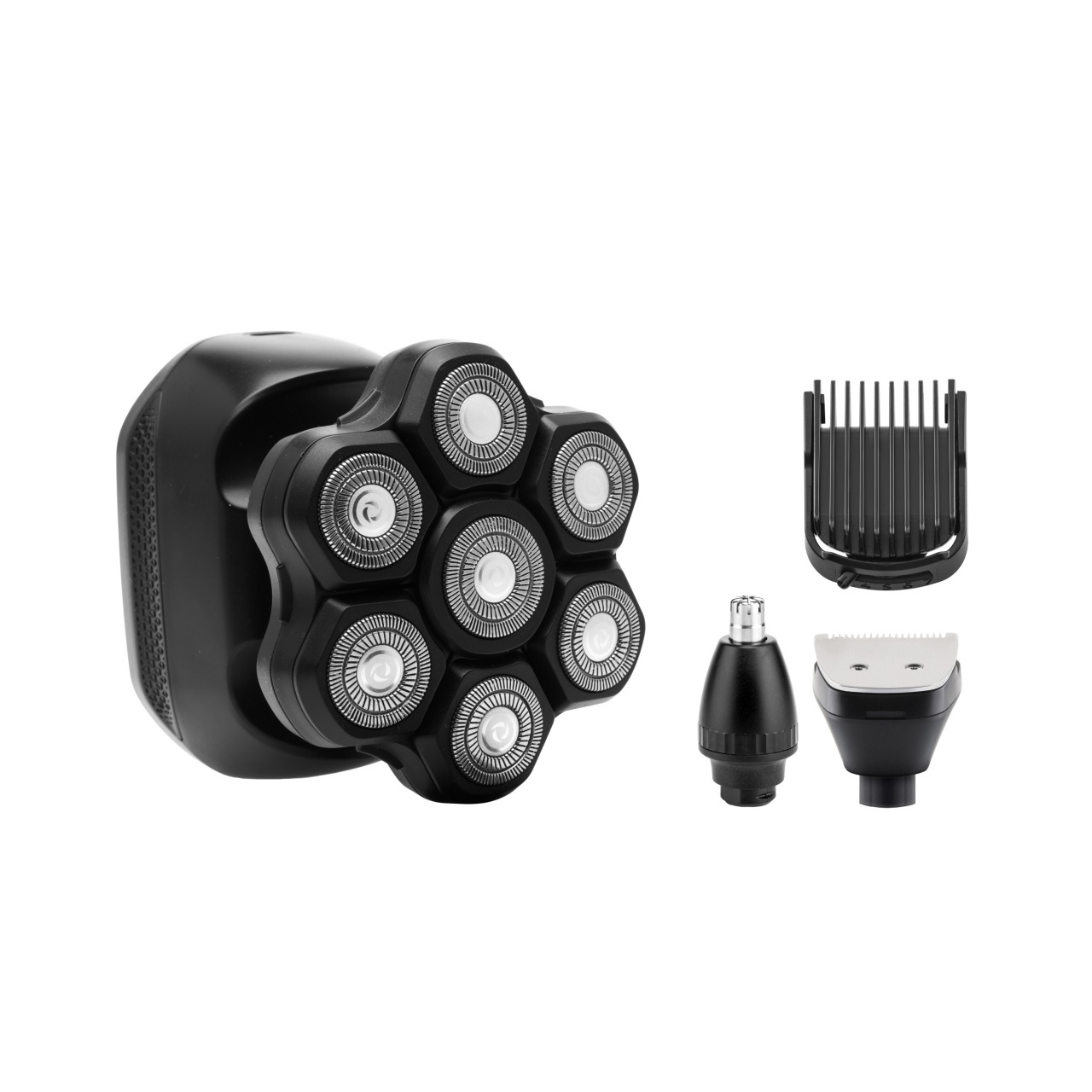Aparat de ras si frezat care urmărește contururile capului 7 lame (freze) pentru un ras eficient si rapid Cap cu atasament magnetic pentru curatare usoara Afisaj LED cu indicator a starii de încărcare, indicator de functionare, memento de curatare, blocare pentru copii Lavabil sub jet de apa Baterie 3,7 V Li-ion / 600mAh Timp de incarcare 1,5 ore Durata de functionare: pană la 60 de minute dupa o singura incarcare completa Clasa de protecție IPX6 Nivel de zgomot 70 dB Accesorii Atasament pentru indepartarea parului din nas si urechi Cap de tuns cu pieptene reglabil la 3, 4, 5, 6 și 7 mm Cablu de alimentare USB de 1 m, husa de transport, perie de curatare Functii inteligente pentru confortul tau Acest aparat de tuns si ras pentru cap ETA Jason iti ofera o solutie rapidă si precisa pentru ingrijirea zilnica a parului scurt. Este creat pentru barbatul modern care apreciaza eficienta, comoditatea si un rezultat perfect de fiecare data. Ras rapid, curat si precis – fara compromisuri Designul este ergonomic, se aseaza natural in palma si permite o manevrare sigura chiar si in sesiunile mai lungi. Capul special cu 7 freze urmareste perfect conturul capului, reducand disconfortul si oferind un ras uniform, fara smulgere. Constructia flexibila a capului de ras se adapteaza usor formei scalpului pentru un rezultat neted si confortabil. Intretinere simpla si accesorii utile Capul frezor se prinde magnetic, ceea ce inseamna ca il poti detasa intr-o secunda si clati sub jetul de apa. Curatarea devine astfel rapida si foarte comoda. In pachet gasesti si doua capete suplimentare : unul pentru tunsul firelor nedorite din nas si urechi, si unul pentru tuns cu pieptene reglabil intre 3–7 mm ideal pentru a modela exact in stilul dorit. Confort maxim datorita functiilor smart Aparatul este echipat cu un afisaj LED modern care indica nivelul bateriei, starea incarcarii si iti reaminteste cand trebuie curatat. Functia de blocare pentru copii previne pornirea accidentala. Bateria Li-ion de 600 mAh ofera pana la 60 de minute de utilizare continua si se incarca complet in numai 1,5 ore. Durabil, silentios si ideal pentru calatorii Cu un nivel de zgomot de doar 70 dB, aparatul nu ii deranjeaza pe cei din jur. Protectia IPX6 permite clatirea aparatului sub apa curenta, ceea ce simplifica intretinerea. Este compact, rezistent si vine cu husa de transport si cablu USB de 1 metru – perfect pentru acasa sau pentru deplasari. ETA Jason este alegerea ideala daca vrei o solutie eficienta, rapida si usor de intretinut pentru ingrijirea parului scurt si a scalpului. Combinatia dintre putere, precizie si accesoriile incluse il transforma intr-un partener de incredere, oriunde te-ai afla.