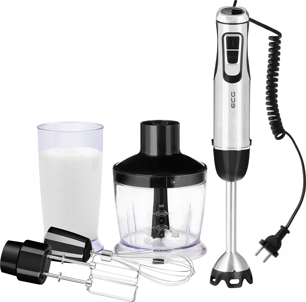 Putere nominala 800 W 10 viteze + TURBO Control simplu cu 2 butoane Cutit din otel inoxidabil cu 4 lame Maner ergonomic Gama de frecvente 65 Hz – 20 kHz Nivel de zgomot: ≤ 89 dB Lungime cablu de alimentare 2 m Cablu de alimentare spiralat extensibil Tensiune de alimentare 220-240 V (50/60 Hz) Accesorii incluse in pachet: tocator cu recipient de 500 ml, tel, carlige framantare, recipient de lucru de 600 ml Blenderul ECG RM 900 cu un design premium din otel inoxidabil va ajuta sa pregatiti multe feluri diferite de mancare. Fie ca preparati o supa cremoasa sau un smoothie din fructe, veti duce abilitatile culinare la urmatorul nivel. Puteti alege una din cele 10 viteze reglabile dupa cum aveti nevoie si cu siguranta veti aprecia butonul special TURBO care ofera imediat puterea maxima de rotatie. Cablul de alimentare este spiralat si extensibil astfel incat puteti lucra cu blenderul mai departe de priza electrica fara nici un fel de probleme. Cu acest blender de mana ai control complet asupra pregatirii mancarurilor tale preferate. Un cutit din otel inoxidabil cu 4 lame , un motor puternic de 800 W DC si o greutate redusa fac ca acest produs sa fie performant si confortabil de manevrat. Blenderul va va incanta cu nivelul sau de zgomot surprinzator de scazut. Accesorii practice Cu ECG RM 900 veti primi in cutie un set de accesorii practice care extind semnificativ domeniul de utilizare al dispozitivului. Puteti folosi un tocator de legume cu un recipient de 500 ml , doua carlige de framantare, un tel si un bol de amestecare cu volumul generos de 600 ml . Datorita designului de inalta calitate din otel inoxidabil si a manerului ergonomic, blenderul va fi usor de utilizat si va deveni ajutorul tau in bucatarie pentru o perioada foarte lunga de timp.