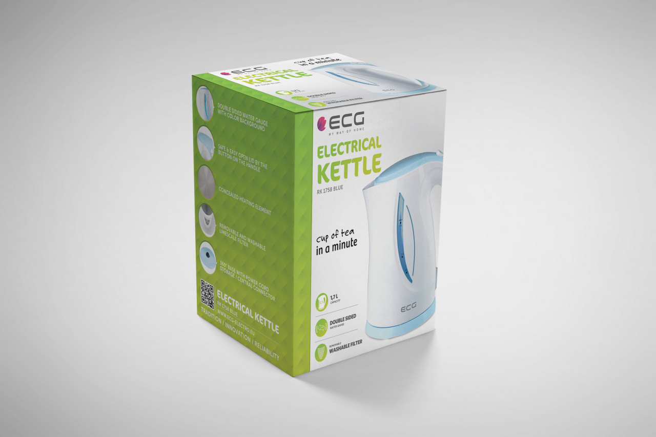 Cana electrica fierbator ECG RK 1758 bleu, 1,7 L, 2000 W, plastic de calitate BPA FREE