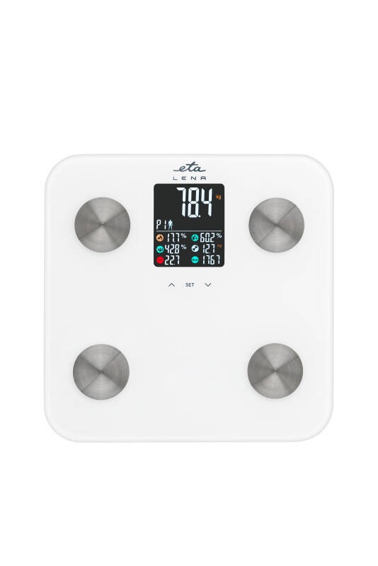 Capacitate maxima de cantarire 180 kg / 396 lb / 28 st Precizie 100 g Suprafata eleganta din sticla securizata cu o grosime de 6 mm Unitati de cantarire: kg, st, lb Masoara: greutatea, grasimea corporala, continutul de apa din corp, masa musculara, masa osoasa, KCAL si IMC Ecran LCD color Posibilitatea de salvare a datelor analizate pentru 10 persoane (in functie de sex, varsta, inaltime) Analiza folosind 5 parametri – inaltime, greutate, varsta, sex si rezistenta biologica Analize corporale pentru persoane cu varsta cuprinsa intre 10-80 ani Cantareste imediat – trebuie doar sa urcati pe cantar si acesta va arata imediat greutatea masurata Oprire automata in caz de neutilizare Indicator de suprasarcina, indicator de baterie descarcata Intretinere usoara si igienica Functionare cu 4 baterii AAA (incluse) Controlul greutatii si al sanatatii la indemana ta Cantarul personal cu analiza corporala este un ajutor ideal pentru toti cei care doresc sa-si tina sanatatea sub control. Ofera date exacte despre grasimea corporala, continutul de apa, masa musculara, masa osoasa, IMC si aportul caloric zilnic recomandat. Acest dispozitiv este conceput pentru a va ajuta sa urmariti cu usurinta modificarile in compozitia corpului dumneavoastra si sa va motiveze sa mentineti un stil de viata sanatos . Design de top Cu o suprafata eleganta de cantarire din sticla securizata de 6 mm , ETA 3781 90000 nu numai ca arata grozav dar asigura si stabilitate si siguranta de fiecare data cand il utilizati. Datorita controlului tactil si a pornirii automate tot ce trebuie sa faci este sa urci pe cantar si vei obtine rezultatele imediat, usor si fara complicatii. Analizeaza si motiveaza intreaga familie Dispozitivul permite stocarea datelor personale pentru 10 utilizatori diferiti, ceea ce este ideal pentru locuintele cu mai multi membri. Toata lumea isi poate urmari progresul si poate analiza rezultatele in functie de parametrii sex, varsta, inaltime si greutate. In plus, cantarul este potrivit pentru utilizatorii cu varsta cuprinsa intre 10 si 80 de ani, ceea ce il face un instrument universal pentru un stil de viata sanatos a intregii familii. Functii inteligente pentru utilizare convenabila Ecranul LCD color afiseaza imediat si clar toate masuratorile ceea ce faciliteaza o evaluare rapida si eficienta a rezultatelor. In plus, cantarul ofera oprire automata, un indicator de suprasarcina si un indicator de baterie descarcata, utilizarea fiind simpla si fara griji. Drumul catre sanatate incepe prin constientizare Cu o precizie de 100 de grame si optiunea de masurare in kg, lb si st , acest cantar permite o analiza detaliata a starii corpului pe baza a cinci parametri. Obtinerea informatiilor corecte este primul pas pe drumul catre un corp mai sanatos iar acest cantar este instrumentul potrivit pentru a va ajuta in acest demers.