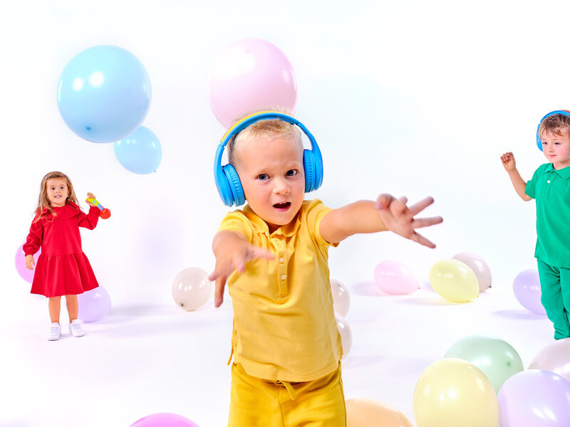 Casti audio fara fir pentru copii GoGEN Decek, Bluetooth 5.2, volum limitat, albastru