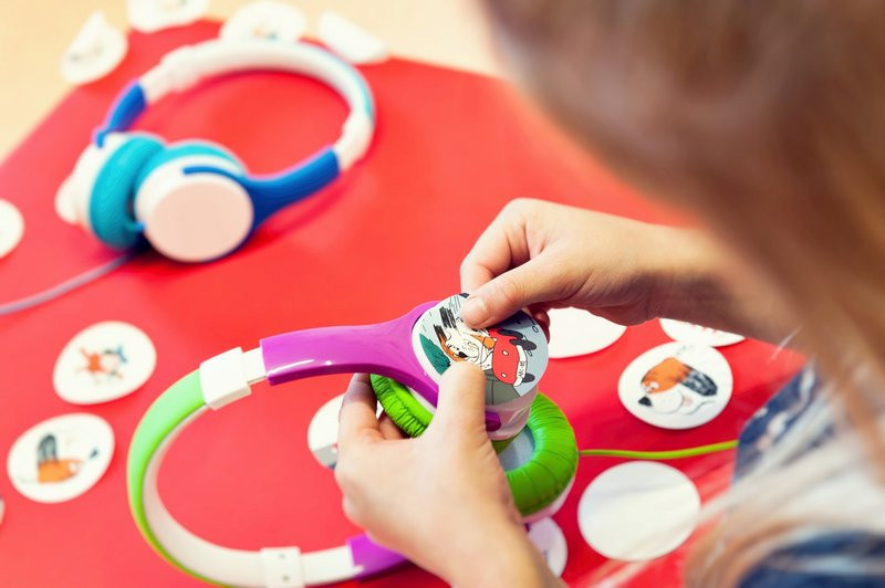 Casti audio pentru fete GoGEN MAXISLECHYG, volum limitat 90 dB, 8 autocolante
