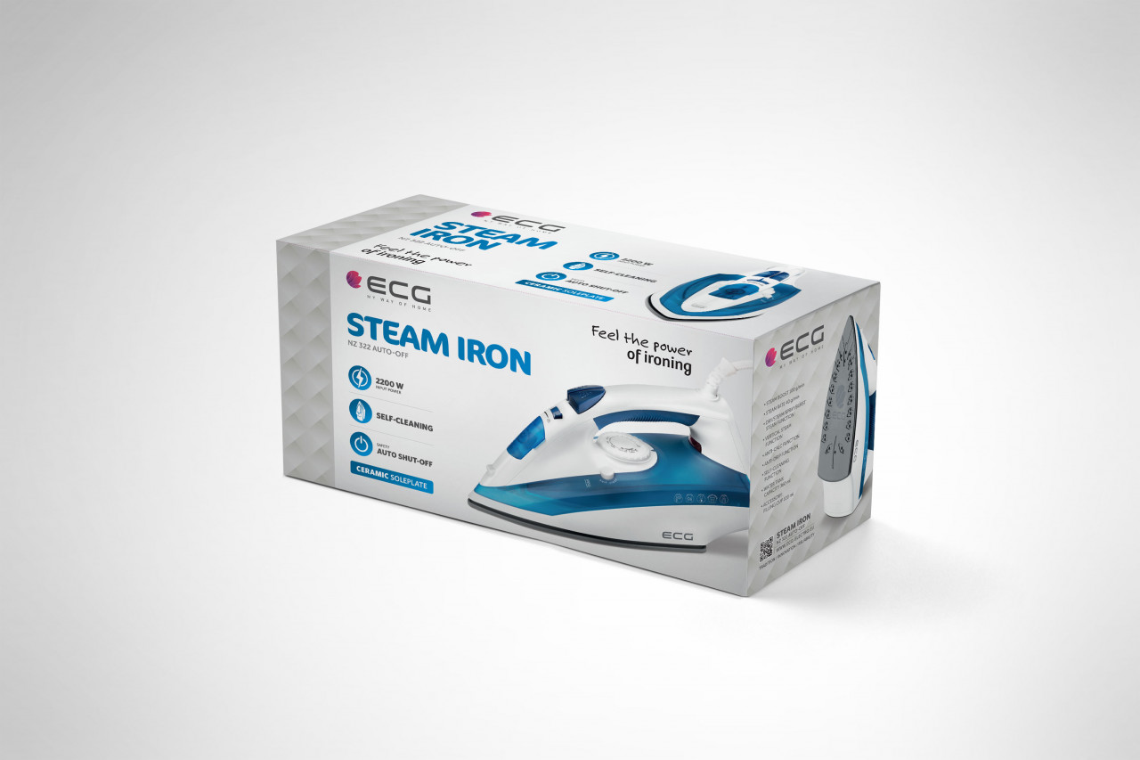 Fier de calcat ECG NZ 322 cu oprire automata, talpa ceramica, 2200 W, jet abur 100 g/ min – Cod produs : NZ322