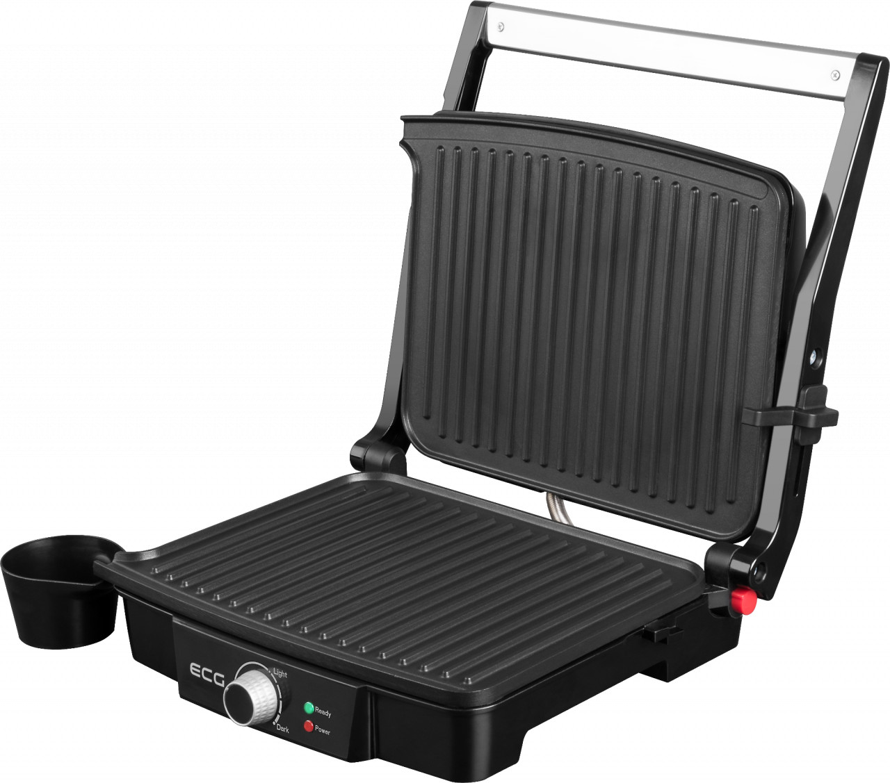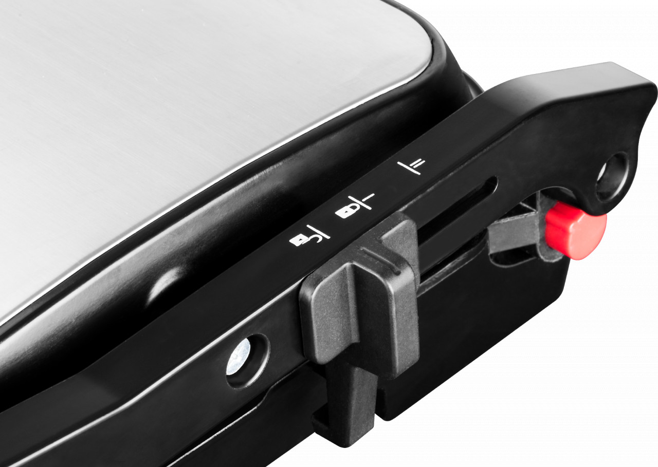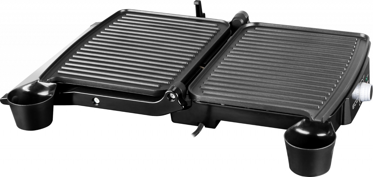 Putere nominală de intrare: 2000 W 3 poziții de lucru – gratar, prajire și barbeque Interval de temperatură reglabil 180 – 240 ° C Plăci de gratar cu suprafata neaderenta Deschidere completă de 180 ° pentru poziția BBQ Blocare inchidere pentru o depozitare ușoară Dimensiuni plăci: 297 × 235 mm Indicator de pornire / oprire si indicator atingere temperatura de lucru Accesorii: două cupe pentru ulei și grăsime Gratar direct la dvs in bucătărie In condiții meteo nefavorabile cand nu se poate iesi la iarba verde sau padure, bucurati-va de gratarul ECG KG 100 in confortul casei dvs. Pe plăcile neaderente, puteți pregati gustări preferate precum fripturi suculente, legume sănătoase sau cârnați delicioși, etc. Detalii practice ECG KG 100 oferă o serie de functii practice, este ușor de utilizat, manipulat si intretinut. Plăcile de gratar pot fi deschise complet la un unghi de 180 °, dublând astfel dimensiunea suprafeței de prajire. Gratarul este prevăzut cu două recipiente pentru captarea excesului de grăsime. In cateva minute se poate pregati micul dejun, felul doi pentru pranz sau o cina simpla si rapida.