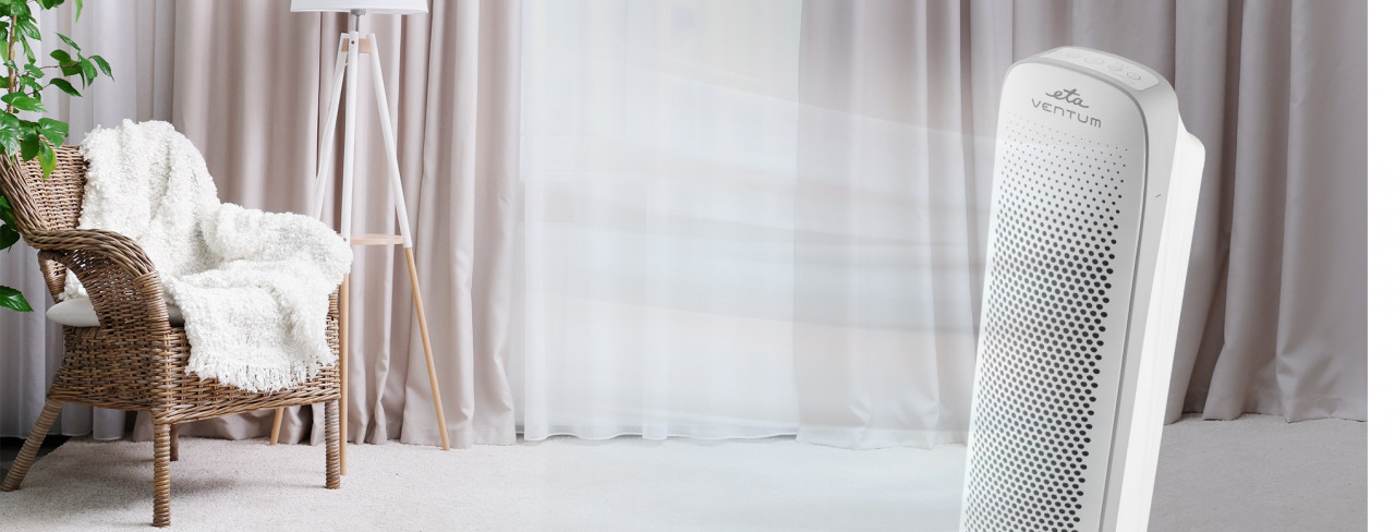 Potrivit pentru locuintele din oras (poluare crescuta a aerului), persoanele care sufera de alergii si gospodariile cu animale de companie Nivel excelent de filtrare (eficienta de pana la 99,97%), inclusiv captarea mirosurilor si a parului de anilmale Consum de energie 50 W Functionare foarte silentioasa – in functie de setare 39-62 dB (A) Acoperire pentru incaperi cu o suprafata de 25-30 m2 Debitul maxim de aer este de aproximativ 220 m3 / ora. 3 viteze ventilator + modul AUTO nIonizare – producerea de ioni negativi si oxigen activ Funcții: Cronometru, mod Noapte, senzor de calitate a aerului, blocare pentru copii, ionizare a aerului Filtru HEPA foarte eficient 4 in1 – in combinatie cu filtru de carbon, filtru din fibre de sticla si pre-filtru din nailon Functie optionala de sterilizare si dezinfectie a aerului folosind tehnologia UV cu functie de fotocataliza Purificatorul de aer elimina particulele mici, mirosurile, polenul, distruge bacteriile si diferite tipuri de virusi Temporizator cu posibilitate de setare a timpului de functionare 2, 4 si 8 ore Motor cu ventilator extrem de eficient si silentios Control automat al puritatii aerului prin intermediul senzorului de poluar Control automat al puritatii aerului prin intermediul senzorului de poluare Semnalizare luminoasa color a functionarii si a nivelului de poluare a aerului Semnalizare schimbare filtru Siguranta in caz de nefunctionare a filtrului sau a aparatului Mod repaus – opriti indicatorul luminos pentru somn netulburat Maner pentru manevrare si transport usor Durata de viata : filtru HEPA 4 in1 aproximativ 3.000 ore, lampa UV 10.000 ore Lungimea cablului de alimentare 1,8 m Purificatorul de aer ETA Ventum este potrivit pentru locuintele cu poluare crescuta a aerului, gospodariile locuite de alergici si gospodariile cu animale de companie. Datorita nivelului excelent de filtrare de pana la 99,97 %, aparatul elimina particulele mici de praf si polen din aer, capteaza mirosurile nedorite si parul animalelor si distruge bacteriile si diversele tipuri de virusi. Aparatul este proiectat pentru a acoperi incaperi cu 25-30 m2 suprafata podea si inaltime standard a tavanului 2.5 m. Puteti alege dintre 3 viteze ale ventilatorului sau modul AUTO . Ventilatorul are o functionare extrem de eficienta si silentioasa . Filtrare de 4 ori Calitatea filtrarii este asigurata de un filtru HEPA extrem de eficient 4 in 1 care combina un filtru HEPA , un filtru de carbon , un filtru din fibra de sticla si un prefiltru din nailon . Semnalul de schimbare a filtrului va va avertiza cand trebuie inlocuit. Daca se intampla sa introduceti filtrul sau capacul incorect, blocarea de siguranta nu va permite dispozitivului sa porneasca. Senzorul de poluare verifica permanent aerul si regleaza viteza de curatare in functie de necesitate. Un semnal luminos va informeaza cu privire la nivelul poluarii aerului si la functionarea sistemului de epurare. Daca doriti un aer perfect curat in casa dumneavoastra, puteti utiliza functia de sterilizare si dezinfectie a aerului folosind tehnologia UV cu functia de fotocataliza. La randul sau, ionizarea asigura producerea de ioni negativi si oxigen activ.