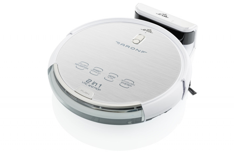 Robot aspirator cu mop ETA Aron 3512 90000, Wi-Fi, baterie Li-Ion 14.4 V, 300 ml, autoincarcare, navigare giroscopica, alb