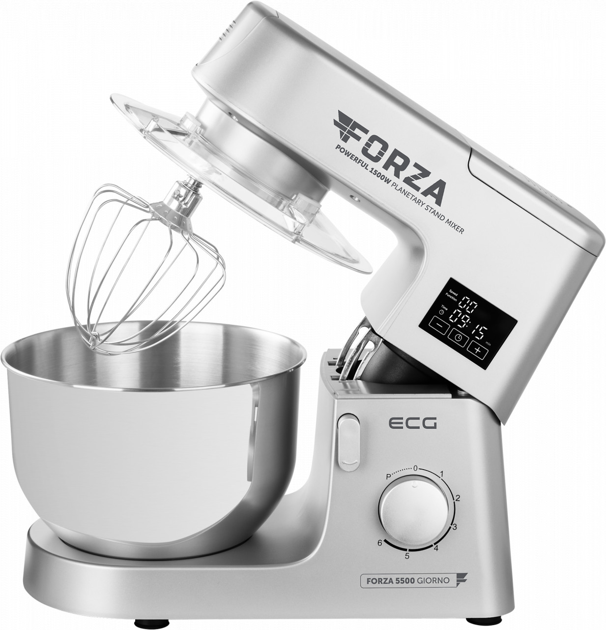Robot de bucatarie ECG FORZA 5500 Giorno Argento, 1500 W, 6,5 litri, LCD, sistem de amestecare planetar