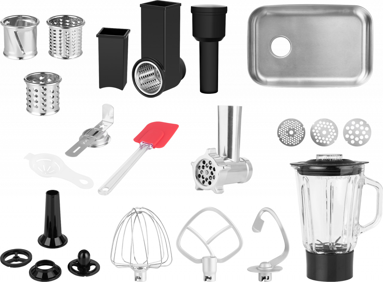 Vas de capacitate mare, din otel inoxidabil cu volumul de 6,5 litri Motor puternic (AC) 1500 W Angrenaje din metal de inalta calitate Sistem de amestecare planetar pentru mixarea perfecta a tuturor ingredientelor (acest sistem consta in miscari circulare ale telului in jurul propriei axe, precum si in jurul vasului pe interior) Controlul vitezei cu pornire lina, in 6 trepte Mod impuls Afisaj LED clar Panou de control tactil Posibilitatea de a seta timpul de functionare pentru un rezultat precis Functionare silentioasa (68 dB) Masina de tocat carne Forme de taiere pentru prajituri Razatoare Blender cu lame din otel inoxidabil de inalta calitate si recipient din sticla de 1,5 l Instrument de presare Corp robust din plastic ABS cu antivibratii Mecanism de ridicare cu autoblocare Picioare antiderapante prevazute cu ventuze Lungime cablu de alimentare 1.15 m Un ajutor de nadejde in bucatarie Bucataria ta este un mediu in care te simti ca pestele in apa? Descopera robotul multifunctional de bucatarie ECG FORZA 5500 Giorno si poarta arta culinara un pas mai departe. Datorita gamei largi de accesorii, acest aparat va va ajuta cand framantati aluatul, tocati carnea si chiar atunci cand preparati frisca. Indiferent daca va place sa gatiti sau preferati sa coaceti, munca dumneavoastra va devein mult mai usoara. Avantajele robotului constau intr-un design robust, un bol mare de amestecare din otel inoxidabil (volum 6,5 l) si un motor fiabil si puternic de 1500 W. Acesta este un aparat avansat – lansat pe piata din Cehia in toamna anului 2022 – incat orice iubitor de gastronomie ar trebui sa se indragosteasca de el. Accesorii pentru framantare Carlig pentru framantare Tel pentru amestecare Paleta pentru amestecare Accesorii blender: Recipient din sticla Capac Impingator Masina de tocat carne: Cutit Dispozitiv pentru tasare Disc de tocat fin cu orificii de 3 mm Disc de tocat mediu cu orificii de 5 mm Disc de tocat grosier cu orificii de 8 mm Palnie pentru carnati Accesoriu pentru Kibbe 6 forme pentru paste fainoase si prajituri Accesorii razatoare/feliere: Dispozitiv pentru tasare Razatoare fina Razatoare grosiera Dispozitiv pentru feliere Accesoriu pentru produse de cofetarie Forma de taiere pentru prajituri Maiestrie la superlativ Daca esti unul dintre acei bucatari ale caror echipamente trebuie sa fie intotdeauna perfecte, robotul nostru este prezent aici si acum doar pentru tine. ECG FORZA 5500 Giorno Argento cu siguranta nu va va dezamagi – motorul este fabricat din cupru pur, angrenajele sunt integral metalice iar calitatea inalta este garantata si de corpul sau robust din plastic ABS care elimina vibratiile nedorite. Adaugati la toate acestea picioarele antiderapante prevazute cu ventuze care asigura o pozitionare foarte stabila si aveti un aparat care indeplineste cele mai inalte cerinte. Amesteca perfect toate ingredientele Pregatiti un desert sau o alta delicatesa pentru familia dumneavoastra? Adaugati ingredientele pentru aluat in vasul din otel inoxidabil si lasati robotul sa le amestece fara griji. Datorita rotatiei planetare toate ingredientele se vor mixa perfect. Atasamentele se rotesc in jurul propriilor axe si in acelasi timp in jurul peretelui interior al vasului. In plus, robotul ofera control variabil al rotatiei cu pornire lina si 6 viteze astfel incat sa ii puteti adapta functionarea la cerintele retetei pe care o faceti. Pe deasupra, puteti utiliza si modul special de Puls pentru rezultate rapide maxime. Operare usoara Oricine poate utiliza cu usurinta robotul de bucatarie ECG FORZA 5500 Giorno . Este controlat convenabil cu ajutorul selectorului de viteza rotativ. Pentru a seta alte functii, de exemplu un anumit timp de amestecare, se foloseste un panou tactil intuitiv completat de un afisaj LED clar . Functia de cronometru este de asemenea utila deoarece puteti seta timpul exact de functionare a robotului. Cand, de exemplu, pregatiti frisca, nu trebuie sa va faceti griji ca o bateti prea mult sau prea putin, pur si simplu setati timpul optim si ati terminat in cel mai scurt timp. Framanta, bate, macina si amesteca Robotul de bucatarie ECG FORZA 5500 Giorno va va ajuta la multe activitati in procesul de preparare culinara. Gama sa de accesorii este cu adevarat impresionanta. Poti folosi carligul de framantare aluat, paleta si telul din otel inoxidabil. Aveti la dispozitie o masina de tocat carne cu 3 discuri inlocuibile pentru a toca diferite tipuri de carne, razatoare cu tambur si un taietor special pentru prajituri. Desigur, nu putem omite un blender clasic cu lame din otel inoxidabil de inalta calitate si bol de sticla cu volumul 1,5 l. Daca va place bucataria italiana, cu siguranta veti aprecia accesoriul suplimentar pentru paste (Pasta Maker) care se poate achizitiona separat.