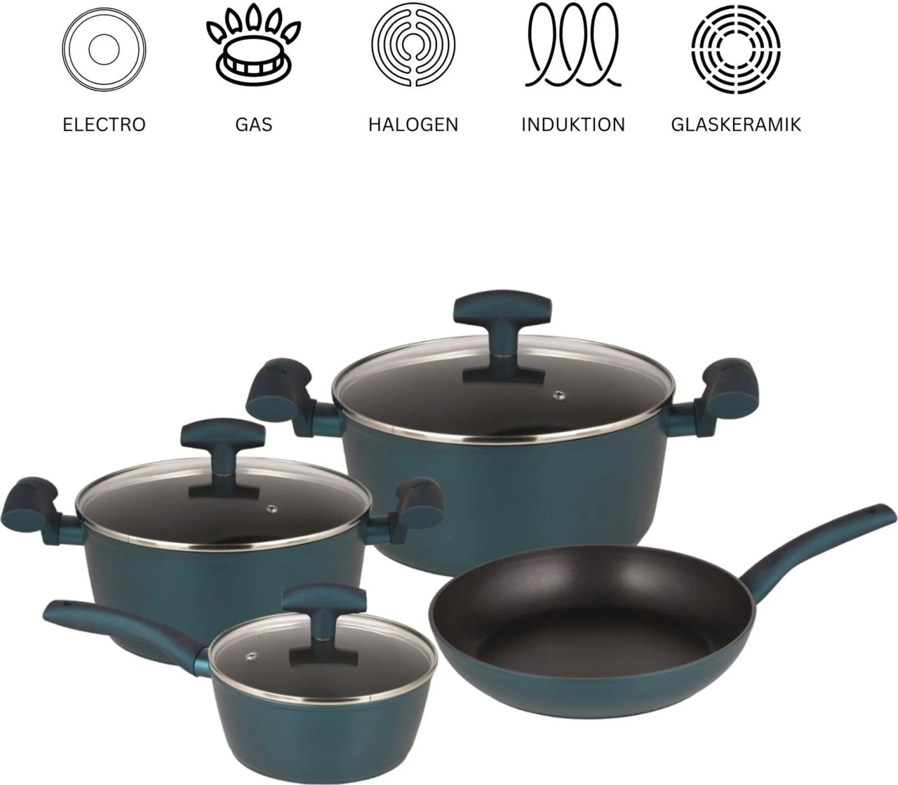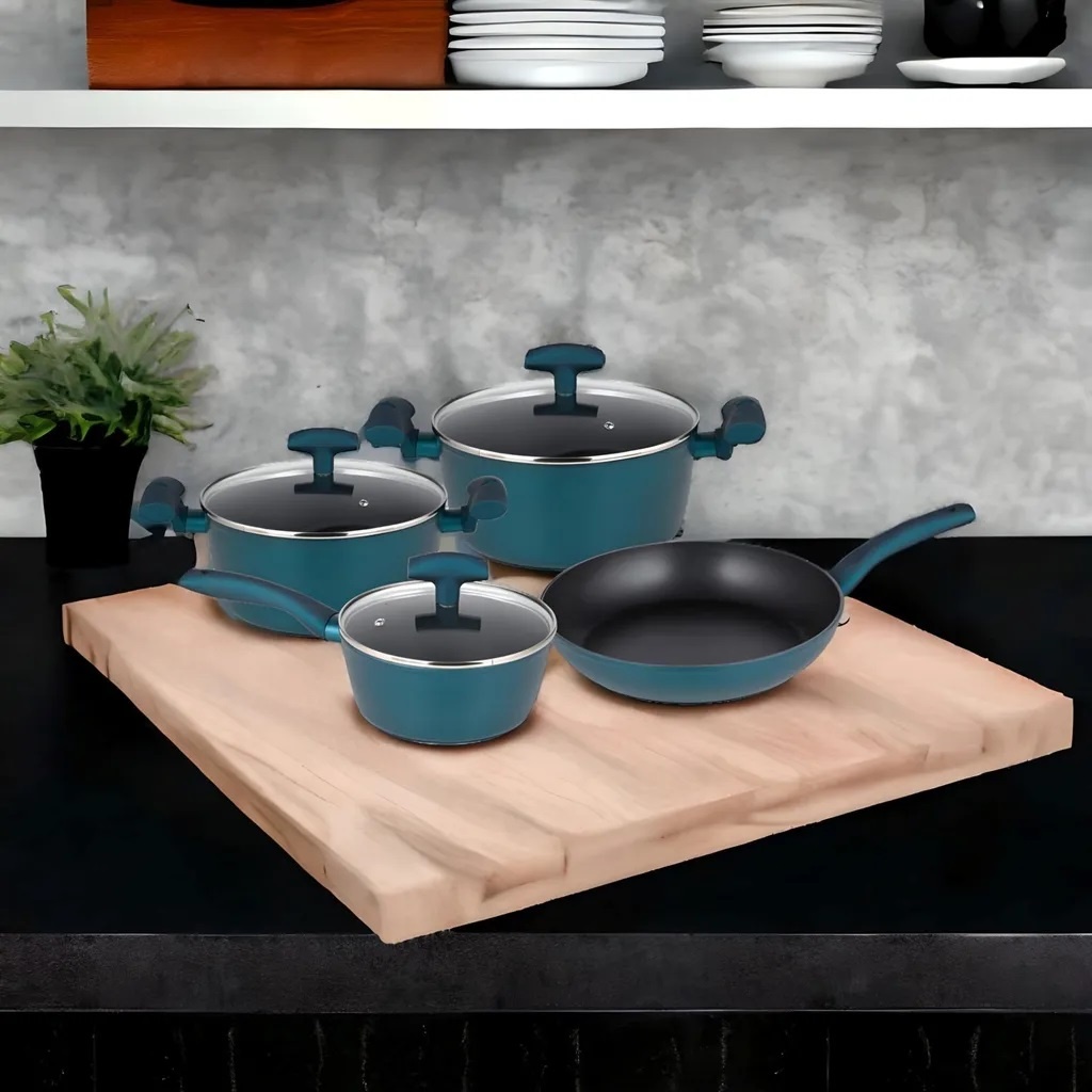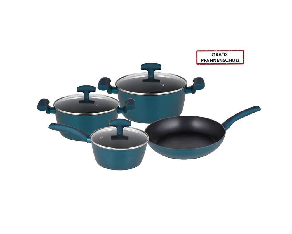 Set vase de gatit Michelino, 7 piese, aluminiu forjat, acoperire antiaderenta, turcoaz