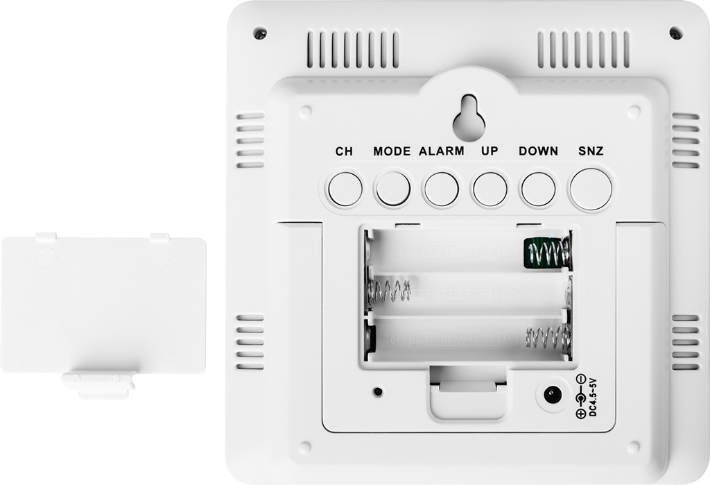 Prognoza meteo pe 24 de ore 4 prognoze: insorit, partial noros, innorat, precipitatii Ceas cu afisare ore, minute si secunde Ecran LCD color Afisarea orei in format de 12 sau 24 de ore Unitate de temperatura: °C sau °F Afisare temperatura interioara si temperatura exterioara Senzor wireless pentru exterior – posibilitatea de a utiliza pana la trei senzori Afiseaza 8 faze ale Lunii Cum este si cum va fi vremea Doresti sa ai o imagine de ansamblu asupra vremii ? Te ajuta statia meteo ECG MS 300 WHITE , care te va tine la curent cu temperatura exterioara si temperatura interioara. Statia este controlata foarte usor de 6 butoane functionale (SNZ, MODE, ALARM, UP, DOWN, CH) situate pe spatelele acesteia. Setarile dispozitivului sunt afisate pe un afisaj LCD color foarte clar. Statia meteo ECG MS 300 White prognozeaza vremea pentru urmatoarele 24 de ore in 4 moduri, cu pictograme pentru insorit, partial noros, innorat si precipitatii . Vei sti mereu cand trebuie sa pleci de acasa cu umbrela sau, dimpotriva, sa nu uiti acasa ochelarii de soare. Afiseaza temperatura si umiditatea interioara, temperatura si umiditatea exterioara si indica gradul de confort pe 3 nivele (mediu uscat, confortabil si umed) . – Afisaj temperatura interioara, precizie : 0,1 ° C, interval: 0 – 50 ° C – Afisare temperatura exterioara : – 40°C ~ + 60°C – Afisare umiditate exterioara, precizie 1%, interval: 20% – 95% – Senzor wireless pentru exterior – posibilitatea de a utiliza pana la trei senzori – Indicarea tendintei temperaturii interioare si exterioare – Indicator de confort pe trei niveluri – Sunet la tastare – Functie DST (statia meteo se va adapta automat la ora de iarna / vara) Alimentare electrica: – Unitatea principala = la reteaua de 220V cu adaptor inclus (iesire 5 V , 0,15 A, 0,75 W) sau 3 baterii x AAA – Senzorul extern de temperatura = 2 baterii x AA – Bateriile nu sunt incluse Caracteristici senzor (MS 3000) : – Transmite temperatura si umiditatea exterioara – Rezistent la apa IP44 – Comutator canal — selectarea canalului corespunzator senzorului (1–3) – Orificiu de montare pe perete — permite senzorului fara fir sa fie prins pe perete – Transmiterea datelor de la senzor pe frecventa radio de 433 MHz – Raza de actiune a senzorului extern in zona deschisa este de 30 de metri Caracteristici suplimentare Pe langa informatiile de temperatura si vreme, statia meteo ECG MS 300 WHITE functioneaza si ca un ceas cu alarma (afiseaza ore, minute, secunde) si calendar. In cazul orelor, puteti seta un format de 12 ore sau 24 de ore in functie de preferinta. Alarma are o functie de amanare de 5 minute . Este echipata cu un indicator practic al nivelului bateriei. Data curenta este intotdeauna prezenta pe ecran si ca bonus aparatul afiseaza fazele Lunii . Pachetul include statia meteo in sine plus un senzor de exterior. Ambele dispozitive pot comunica fara fir pana la o distanta de 30 de metri .