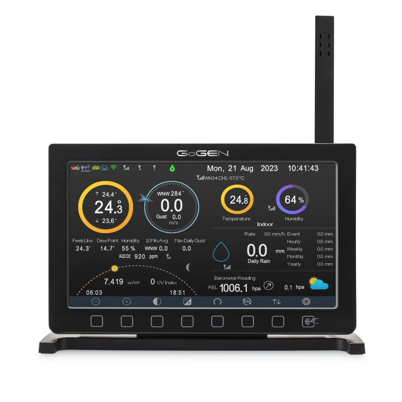 Statie profesionala SMART GoGEN ME 7900, Wi-Fi, ecran color 7”, senzor extern complet, masurare vant, ploaie, UV, temperatura si umiditate, aplicatie WSView Plus, negru
