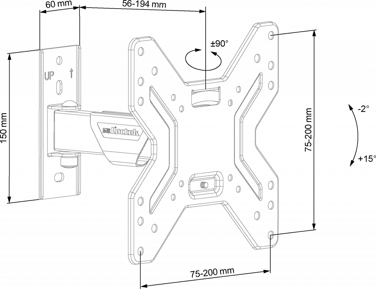 Diagonala: 17″- 42″ (43 – 106 cm) Distanta televizorului fata de perete: 56-194 mm Inclinare reglabila pe verticala de la 2°la 15° Rotire pe orizontala : 90° Standard VESA: 75×75; 100×100; 200×100; 200×200 mm Boloboc integrat Greutate maxima de incarcare 25 Kg Material metalic, constructie solida, culoare neagra Spatiu pentru cabluri: da Instructiuni de instalare in limba romana Accesorii complete pentru montare Suportul universal de perete ECG LD 174202 pentru televizoare LED, LCD si cu plasma ofera o instalare rapida si usoara datorita accesoriilor de montare complete . Are sistem de prindere in conformitate cu standardul VESA 75×75, 200×200 , inclinare de la 2 ° la 15 ° si un sistem sigur de fixare. Suportul este testat si construit pentru televizoare cu o diagonala de pana la 106 cm si o greutate maxima de 25 kg . Avantajul suportului TV este indiscutabil, televizorul putand fi repozitionat mai bine in functie de nevoile de moment. Poate fi amplasat in locuri mai ferite si elibereaza spatiul de pe mobila din camera. Alegeti un suport in functie de dimensiunile si greutatea televizorului ! ECG LD 174202 este suficient de simplu pentru a putea fi montat de oricine are la indemana sculele necesare si un minim de pricepere. Se instaleaza foarte usor, iar standardul VESA il face compatibil cu toate marcile de televizoare. Standard VESA = distanta dintre gaurile de fixare pe verticala si pe orizontala pentru fixarea suportului de partea din spate a televizorului.