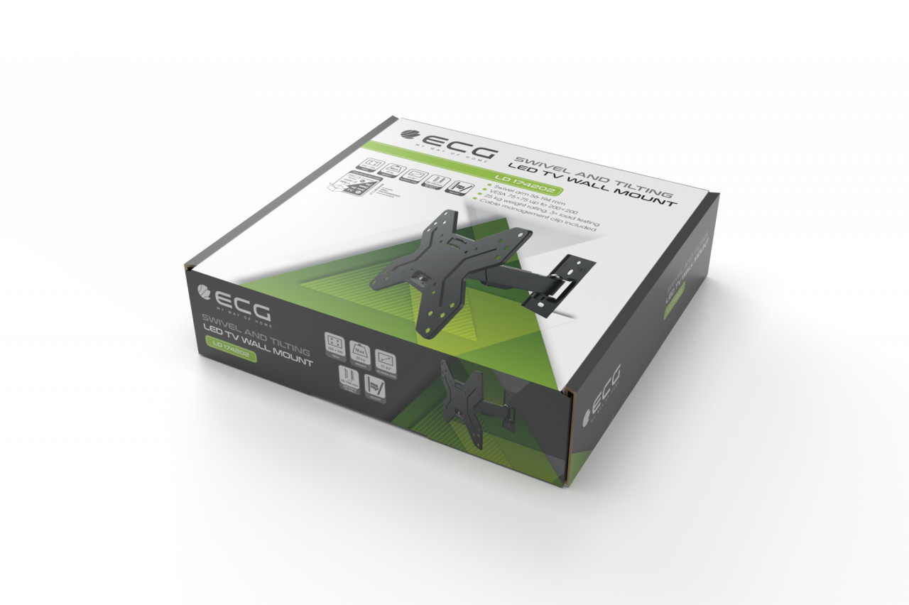 Suport TV de perete ECG LD 174202, 17″- 42″ (43 – 106 cm), rotire 90°, inclinare 2°-15°, 25 kg, VESA